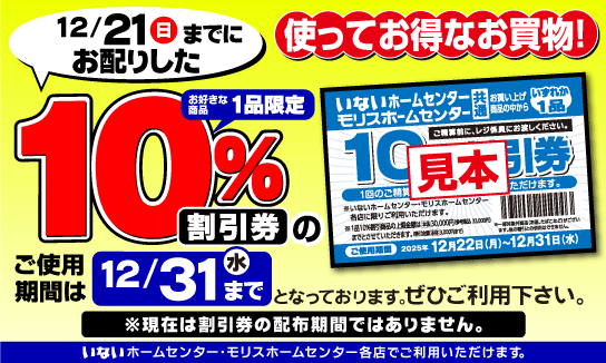 - 12月21日(日)までにお配りした「1品10%割引券」ぜひご使用ください!