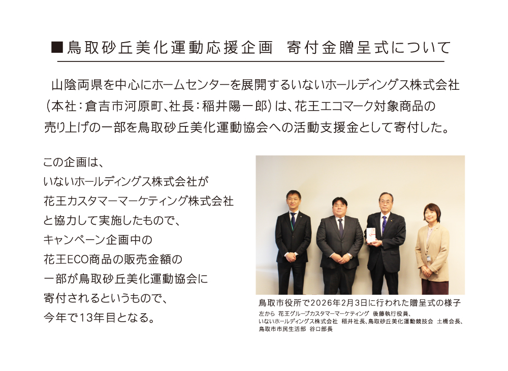 「鳥取砂丘美化運動応援企画」寄付金贈呈式が行われました。