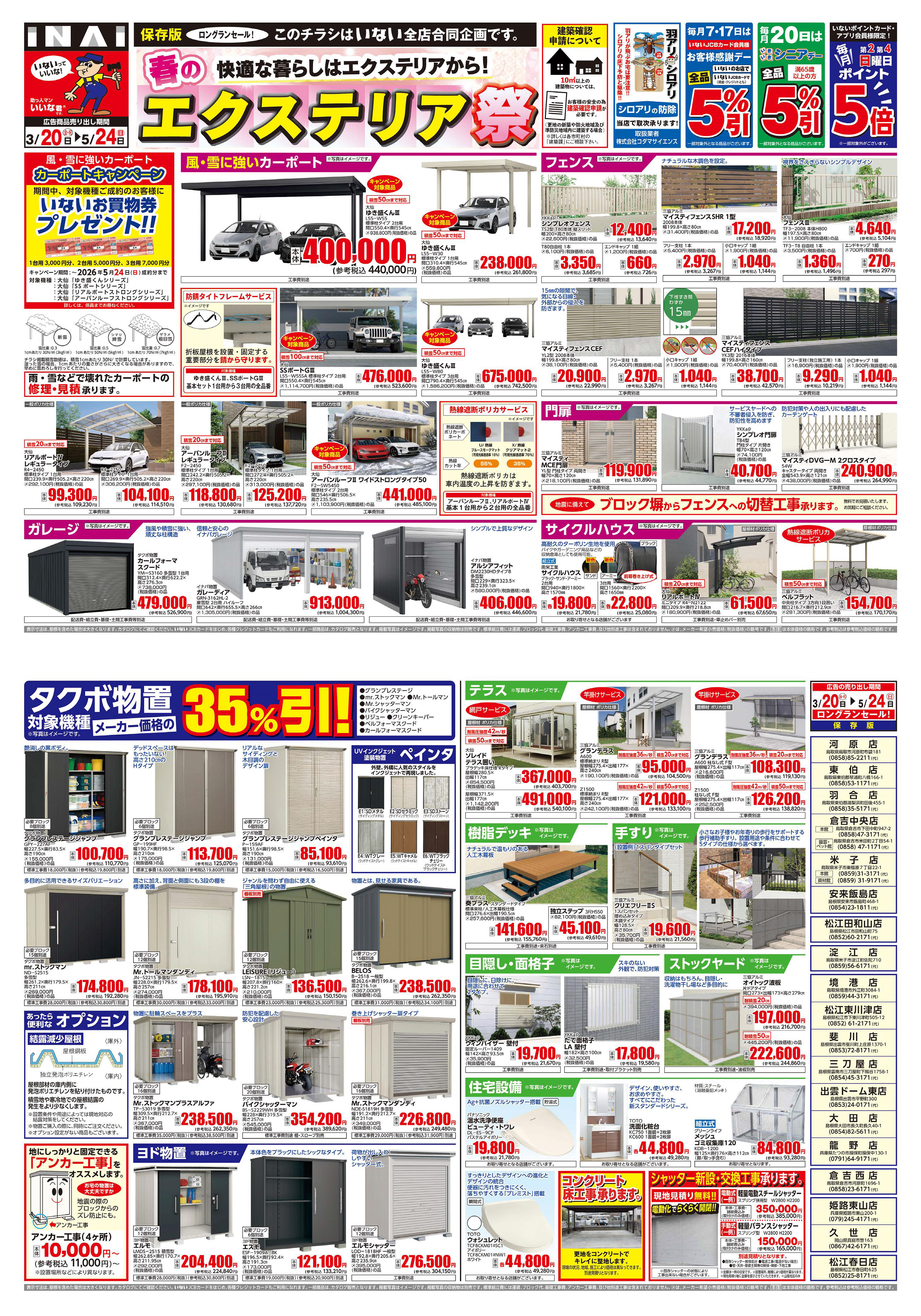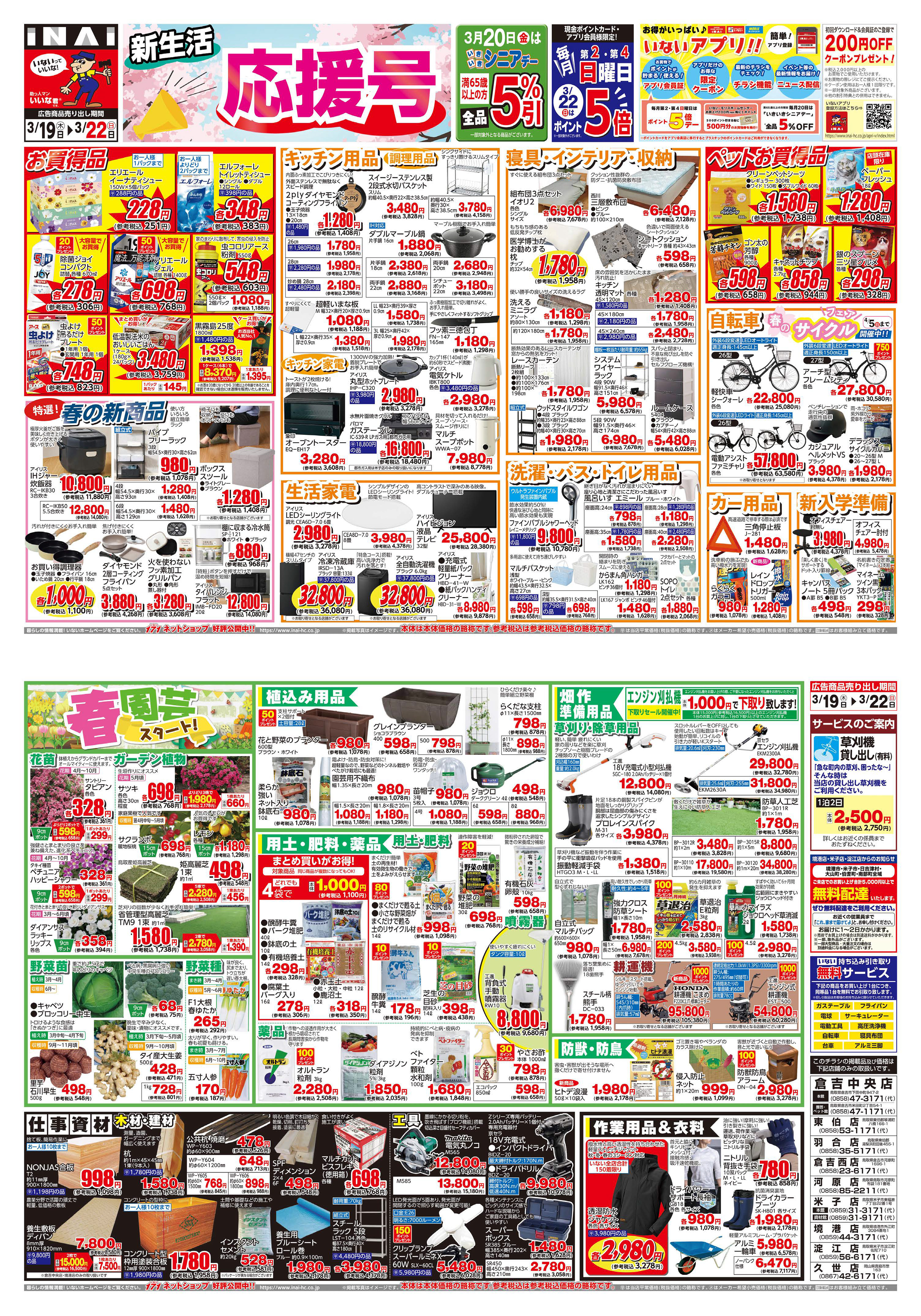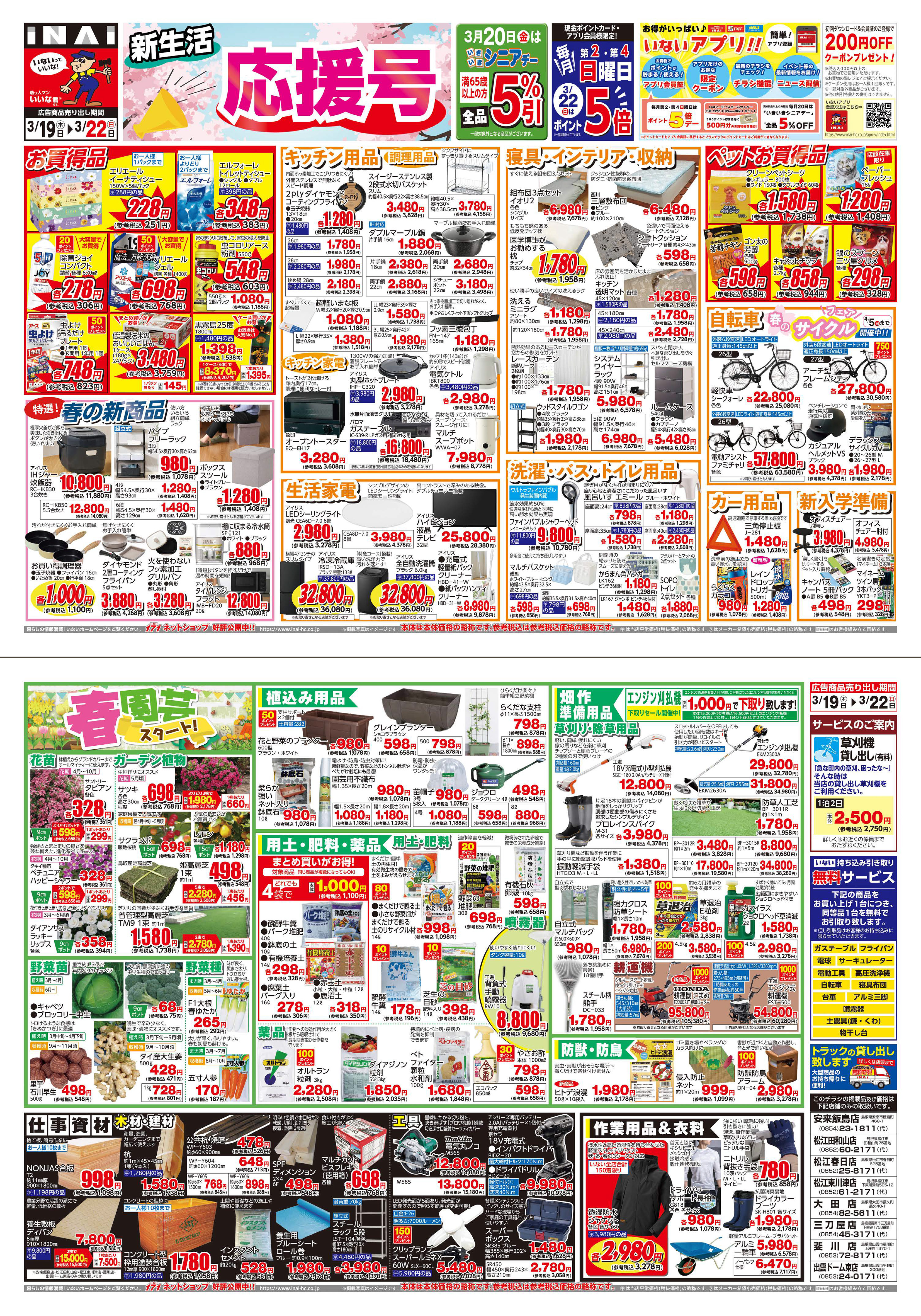 WEBチラシ いない春の農業資材祭 春のエクステリアチラシ いない モリス ホームセンター WEBチラシ 鳥取県 島根県 姫路・龍野地区 久世地区 モリスホームセンターのチラシはこちら 業務スーパー WEBチラシ 業務スーパー 鳥取駅南店 業務スーパー 倉吉中央店 ミモザ WEBチラシ ミモザ 鳥取店 ミモザ イオンモール日吉津店 ミモザ 新居浜店 ミモザ イオンモール今治新都市店 ミモザ イオンモール高松店 ミモザ 西神戸店 ミモザ イオンモール北大路店 ミモザ 岡山大安寺店 ミモザ 東岡山店 ミモザ 西条店 ミモザ イオンタウン楽々園店 ミモザ イオンモール広島祇園店 ミモザ 新下関店 Pet's Park WEBチラシ Pet's Park 鳥取店 Pet's Park 出雲店 Pet's Park 高松店 Pet's Park 福知山店 Pet's Park 山口店 Pet's Park 新下関店 Pet's Park 防府店 Pet's Park イオンタウン周南久米店